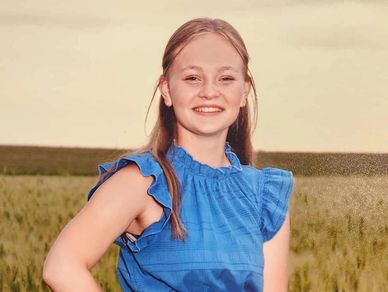 She is the daughter of Garen and Jamie Henderson and the granddaughter of Judy and the late Wayne Henderson and Bonnie and Darrin Dalsing. Violet is a freshman at Crest High School and plans to attend college in the future with a focus on the Arts.